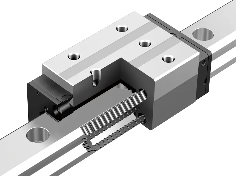 Roller Guides at a 45° angle ensure high accuracy and smooth movement. Their four-row design provides equal strength in all directions—radial, reverse radial, and lateral—offering excellent rigidity. Additionally, the tapered groove increases the contact area between the rollers and the raceway, allowing for higher load capacity, better stability, and self-alignment for smoother performance.